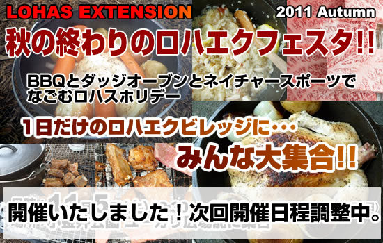 夏の終わりの11月5日(土)(雨天の場合は11月6日)、小金井公園にて、ロハエクメンバーとスタッフが大集合するネイチャーパーティを開催します。野外BBQやダッジオーブンを楽しんだり、小さな “ビレッジ(集落)”を一緒につくってみませんか?自然の中で心を開いて、ゆるやかに「新しい同世代の友情」や「新しい恋の予感つながり」、そして「自然遊びつながり」をつくりましょう。初めての方も歓迎です。もちろんロハエクファンのみなさんにはぜひぜひ参加して頂きたいと願っております♪この日、み〜んな、みんなロハ友になっちゃってください。ちなみに独身者様限定でお願いします♪